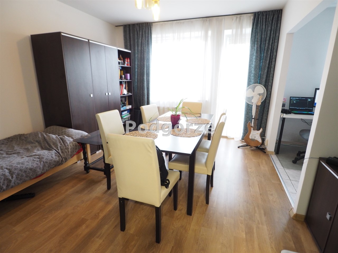 - duży pokój, kuchnia jasna z oknem, łazienka z toaletą, garderoba