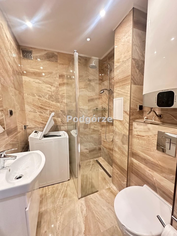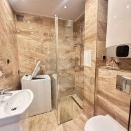 - duży pokój z wnęką sypialnianą, mniejszy pokój, kuchnia w aneksie, łazienka z kabiną prysznicową i toaletą