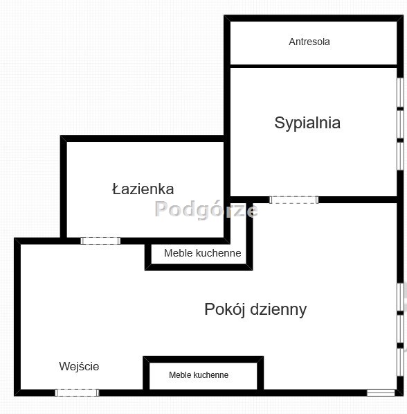 - salon połączony z kuchnią, sypialnia z antresolą, łazienka z toaletą oraz przedpokój