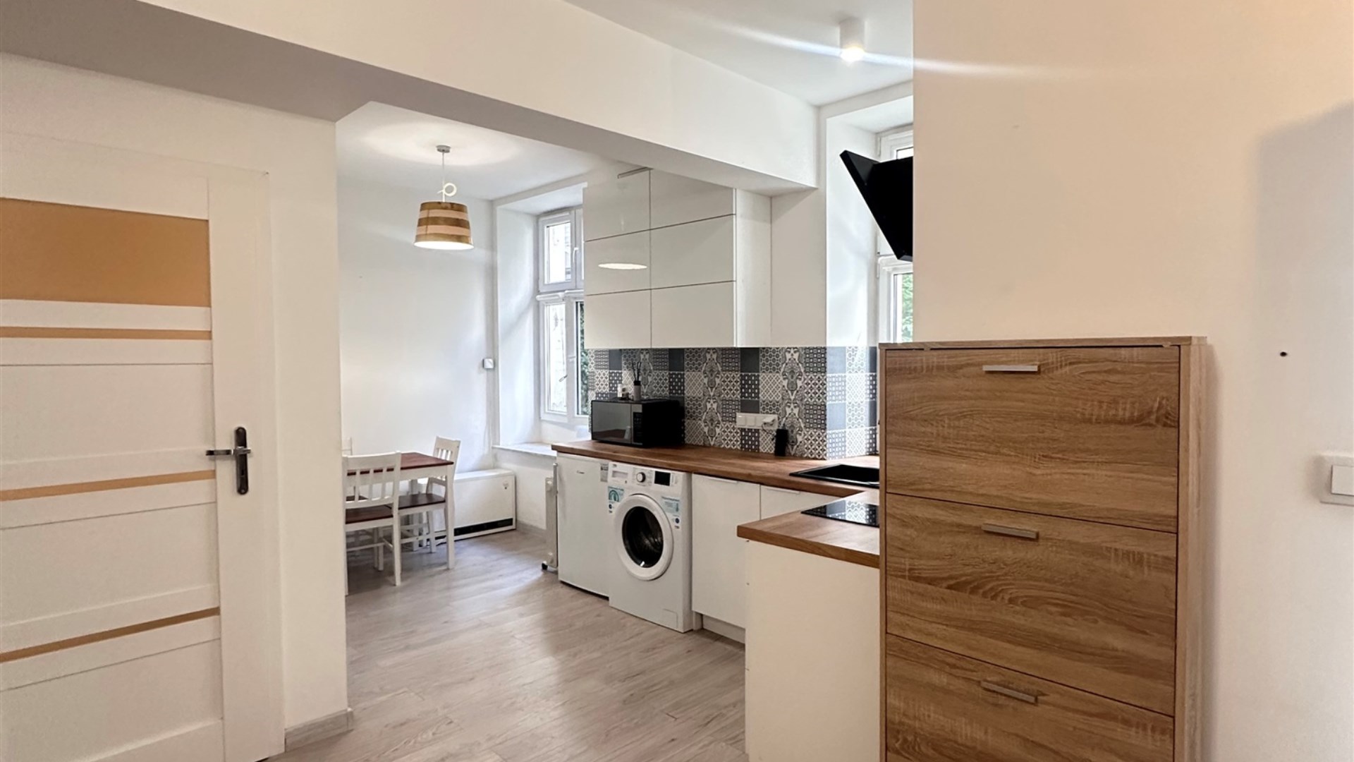 - duży salon z aneksem kuchennym z wydzieloną częścią sypialnianą, łazienka z toaletą oraz przedpokój