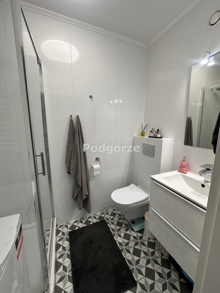 Obecny układ mieszkania to salon z aneksem kuchennym, sypialnia, łazienka z WC, przedpokój. Dodatkowo w mieszkaniu pozostają sprzęty takie, jak pralka, płyta indukcyjna, piekarnik oraz lodówka - wszystkie sprzęty są w bardzo dobrym stanie.