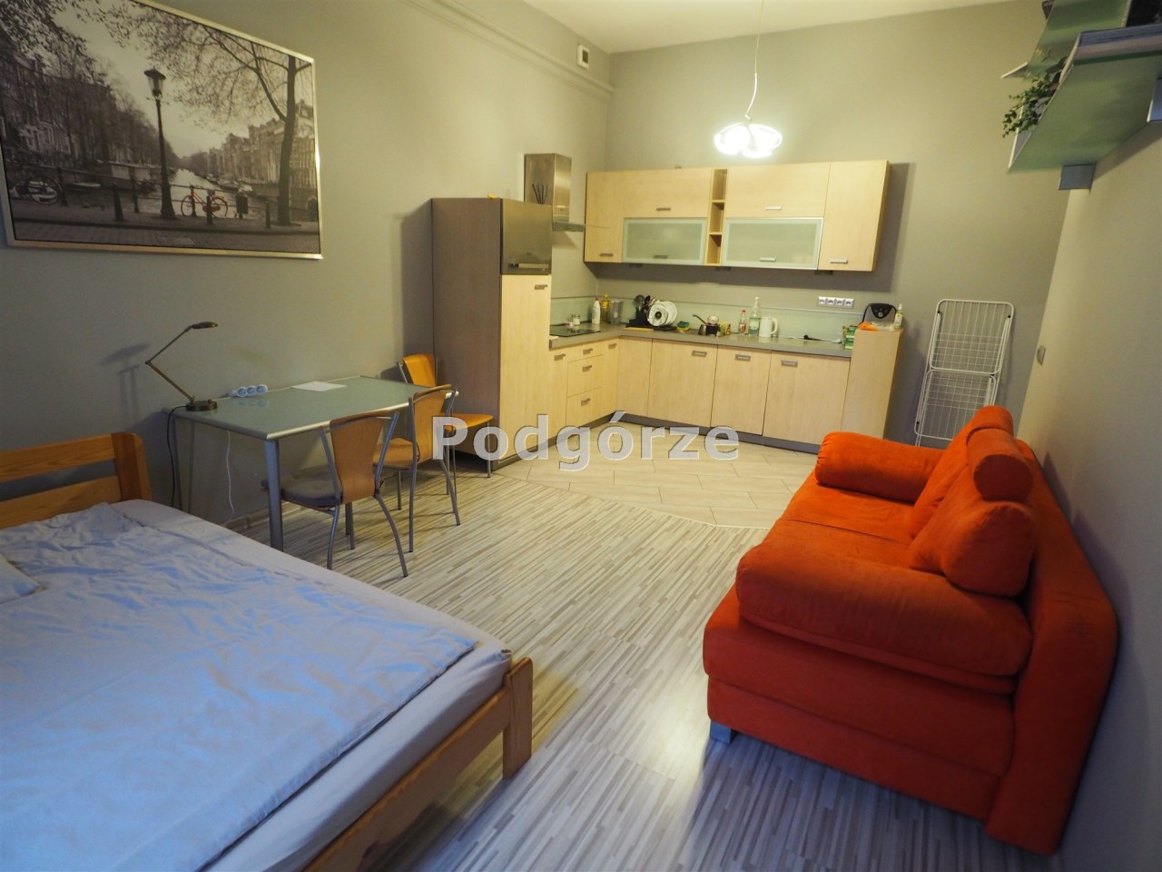 - pokój z aneksem kuchennym, łazienka z toaletą oraz przedpokój
