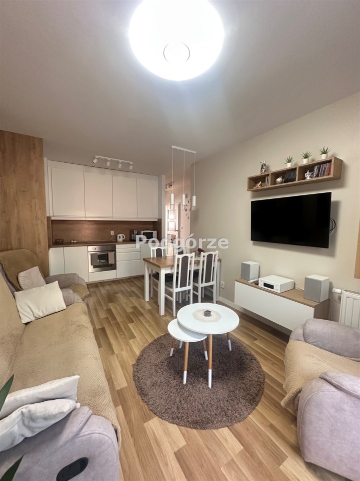 - salon z aneksem kuchennym, dwie duże sypialnie, łazienka z toaletą, korytarz